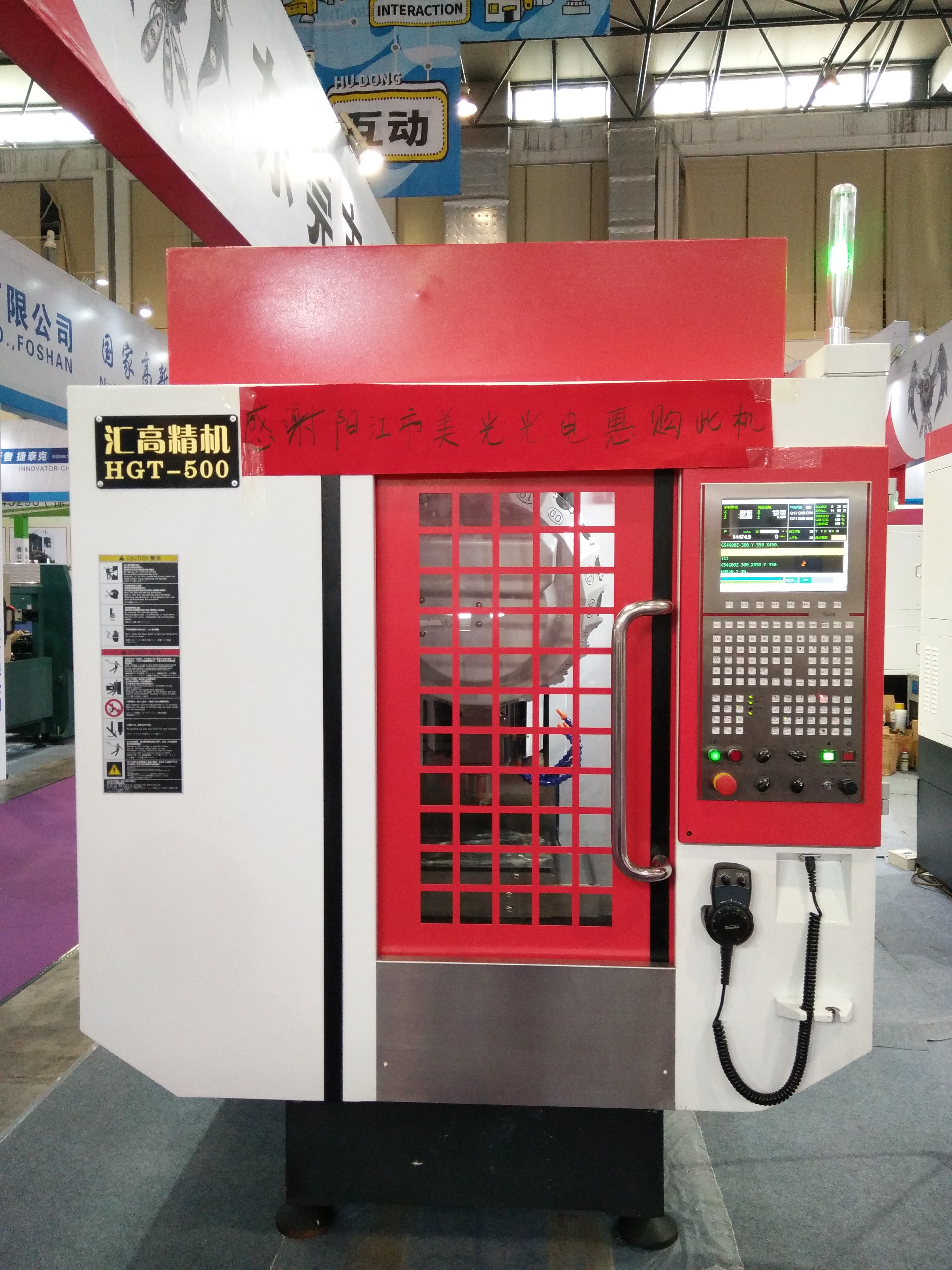 感谢佛山浩能公司现场惠购我司HGL-86V中速机,感谢阳江美光光电公司惠购我司HGT-500刀库铜公机。中速机定位于高速机与立式加工中心之间,具备高进给转角不减速功能,小模具加工,可以实现开粗光刀一台机完成,从而提升2-3倍加工效率;具备有高响应性的伺服能力,从而保证加工出来的产品达到高精度要求,合模一次性成功,无需修模。在接单价格不变的情况下,节省了50%的加工时间,从而提升2倍的加工单价。