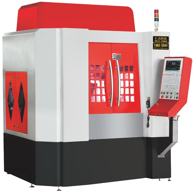 数控模具雕铣机一般采用高的铣削速度和快速多次走刀来进步效率,小直径刀具,适当的进给量,小的径向和轴向切削深度,即切削体积。随着铣削速度的进步,加工时间大幅度缩短,并且切削力下降、振动小,尤其是径向切削力大幅度降低,零件变形小,由于在切削时大量的切削热被切屑带走,工件表面温度较低。由于高速铣削的的上述特点,数控高速模具机相对常规加工具有突出优点:高生产率、工作平稳、加工表面质量很高,无需再进行其它表面处理工序、有利于加工薄壁零件和高强度、高硬度脆性材料、可缩短交货期、减少设备台数及车间面积、减少工人数目。尽管在初期的设备投资用度增加,但高速铣削工艺的综合效益仍有明显进步。